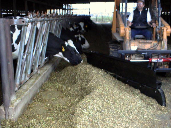 The feed alley scrapers are used to keep the feed close to cows. This makes cows more inquisitive encouraging them to get up and feed more.
